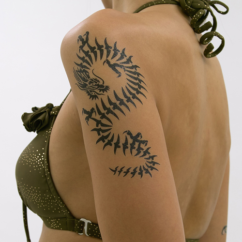 TATTOO(タトゥー)シールで、グッと色っぽく!いつものコスプレ衣装に合わせて、こだわりの箇所に貼り付けるだけ!特殊な素材を使用しているので、皮膚の動きと一緒に伸び縮みします。