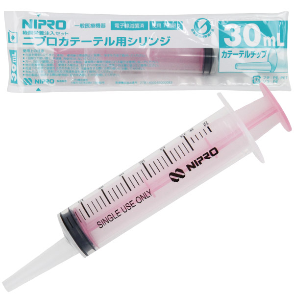 ピンクがかわいいプラスチック製のカテーテルチップ型シリンジ!医療系器具ブランドのニプロ製、扱いやすい30mlサイズの注射器です。アナル洗浄のために洗浄液を注入したり、アナル拡張時の痛みを和らげるためにローションを注入したりと、プレイへの用途は豊富です。個別包装で滅菌済み!すぐに使える安心の医療系器具です。