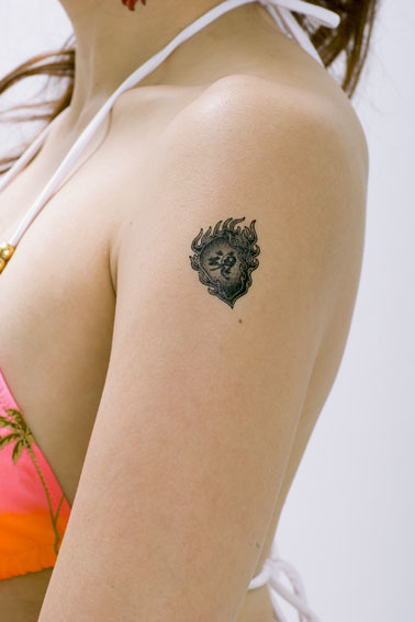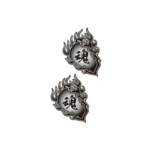 お洒落のワンポイントになるファッションアイテム!ミニサイズのTATTOOシール「魂」。コスチューム等に合わせて露出した肌に貼り付けるだけ!特殊な素材を使用しているので皮膚の動きと一緒に伸び縮みし、入浴したり海やプールに入っても2〜3日は取れません。祭り化粧を取る際は、専用のクリーナーやクレンジングクリーム、ベビーローション等で拭き取って下さい。