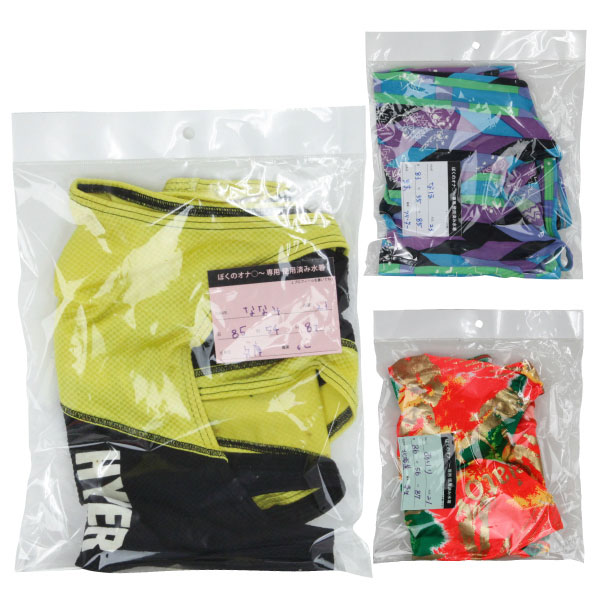 素人さんが持ち込んだ使用済みアイテムを、そのままパックしたかのようなリアル感!名前・年齢・スリーサイズの情報など、妄想しやすい生々しさもあり、オナニーがさらに捗るフェチグッズ!どんなデザインの水着が届くかは、到着してからのお楽しみです。