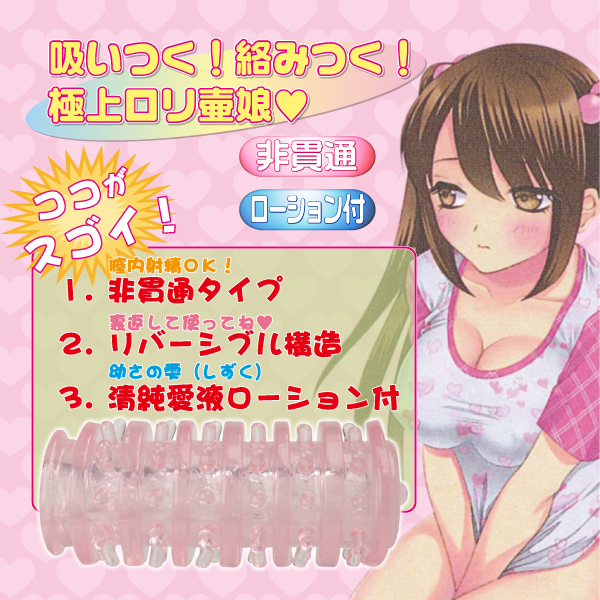 ロングセラーホール「まんぽこりんパート2」が進化し、「まんぽこりんスペシャル」としてリニューアル♪極上のロリ娘を表現したこのホールは非貫通タイプで、引き抜く時の吸い付き感と絡み付き感がたまらない逸品です!膣内射精も可能で、リバーシブルタイプで裏返せば異なる快感が楽しめます。