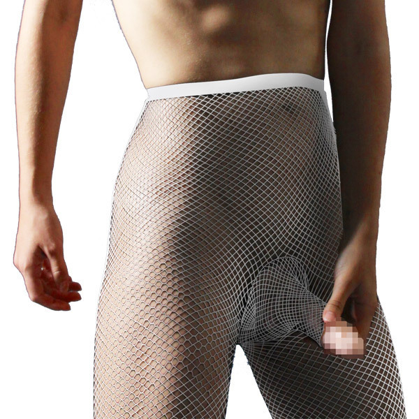 一度履いたら、止められない!?ぴったりフィット、男のパンストストッキング。白のメッシュで伸縮性抜群!フロントが本格的なメンズ仕様になった筒型パンティストッキングなら、トイレも安心。ズボンの下に履いて、秘密のお洒落を楽しもう!