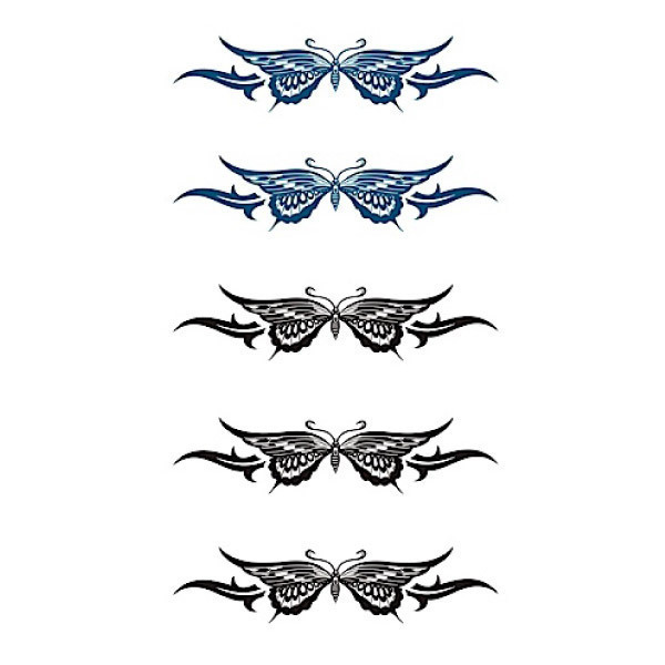 ブルーと黒の蝶が美しいタトゥーシール「腕輪・トライバル蝶」。水を使って簡単に貼り付けられる便利さ!コレを貼るだけで雰囲気がガラリと変わり、手軽にちょっとヤンチャなファッションが楽しめちゃいます。男性でも女性でもエロかっこよく決まる!私服はもちろんコスチュームにも合わせれば、オシャレの幅が広がりますよ。