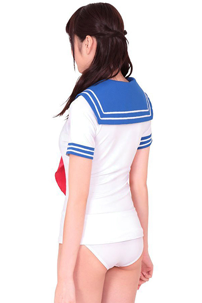 コスチュームの定番同士が夢のコラボ?半袖セーラー服とスクール水着がひとつになった、最強コスチューム。ありそうでなかった新発想デザイン!カラーやスカーフもばっちりついていながら、そのままプールなどで遊べちゃうびっくり仕様!注目の的間違いなしのセクシー水着です。