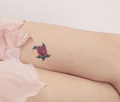 首すじ・胸元・腕・足首、アナタならどこに貼る?ただ一箇所に貼るだけでもセクシーに見せられる薔薇柄の本格的な刺青シールです。入浴はもちろん、プールや海に入っても剥がれないので安心してオシャレを楽しめるファッションアイテム。皮膚の動きに合わせて伸び縮みするので、剥がれるまでキレイなまま!パーティーやお祭りといったイベントにオススメなボディシールです。