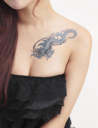 神秘的な青い龍を身にまとえる、レギュラーサイズのタトゥーシール「青ドラゴン2」。