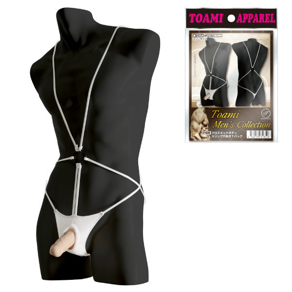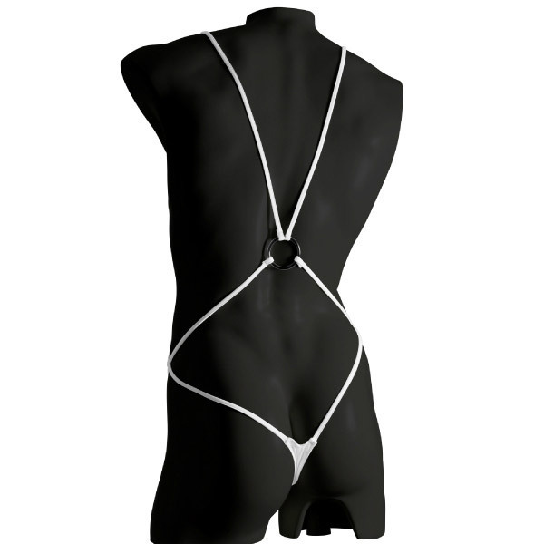 ボディでクロスさせた白い紐が超セクシー!テディのように挑発的なメンズランジェリー。股間の部分は大胆にも穴あき!黒いリングに紐が集結し、Tバックで自然に引き締まったお尻もアピールできる、魅惑のメンズランジェリーです。※ショーツのみの販売となります