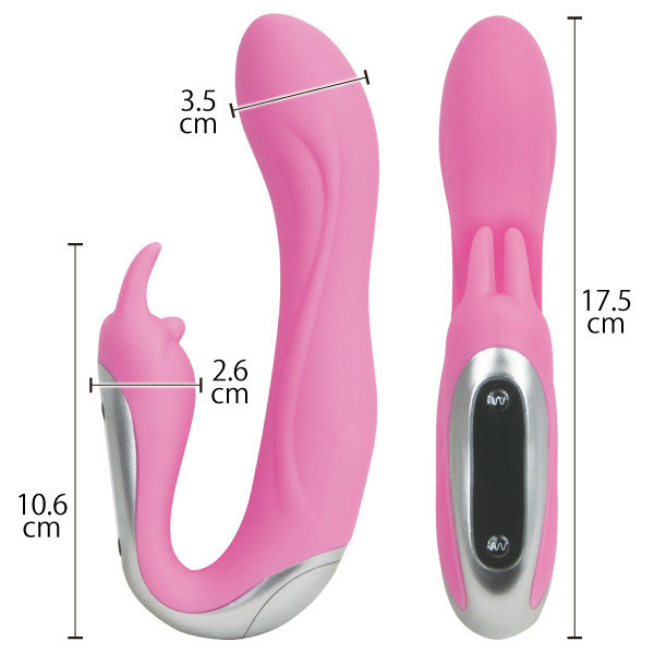 挿入側と可愛いウサ耳が付いたクリバイブの両先端に、個別で操作できる強力モーターを搭載!Gスポットとクリトリスを挟み込んで刺激します。