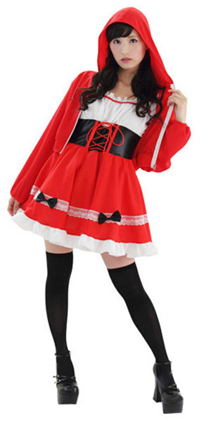 あの有名なおとぎ話の主人公になりきっちゃお!真っ赤な衣装がインパクト抜群な赤ずきん風コスチューム。