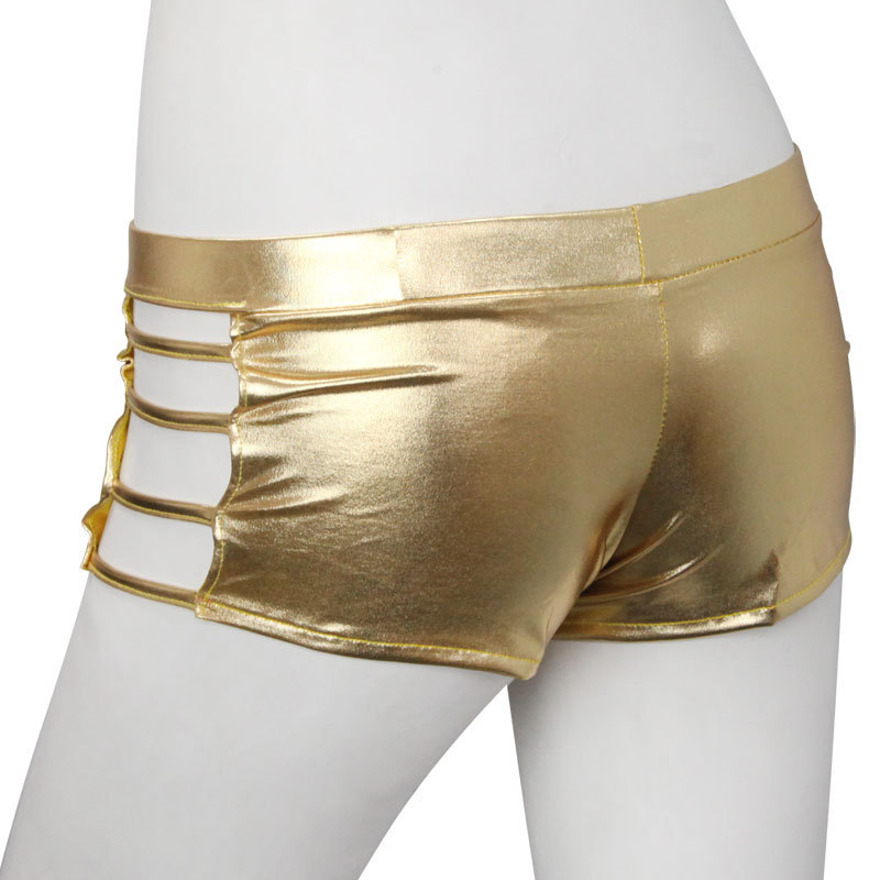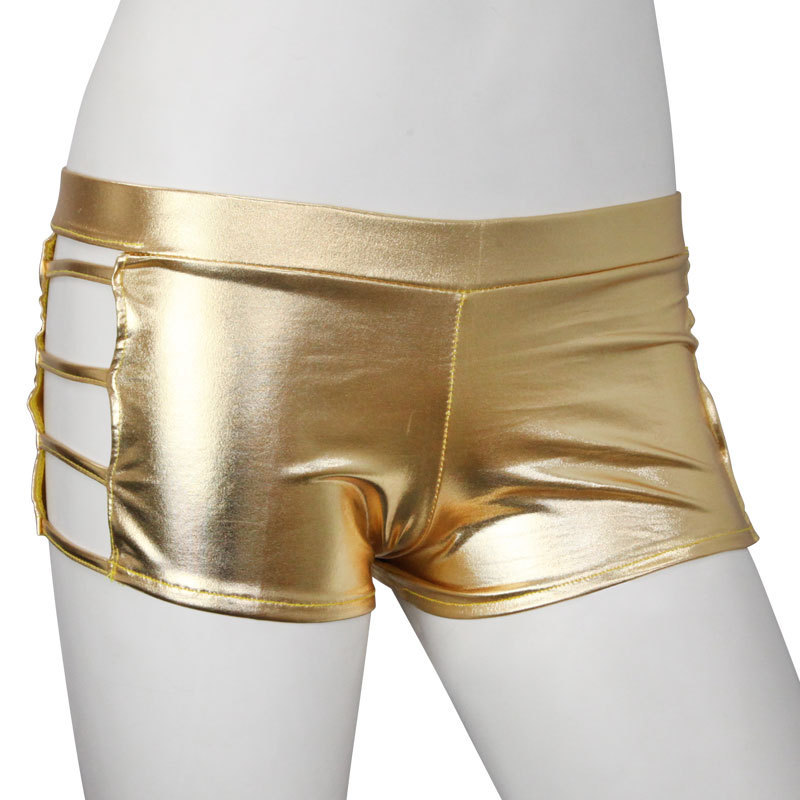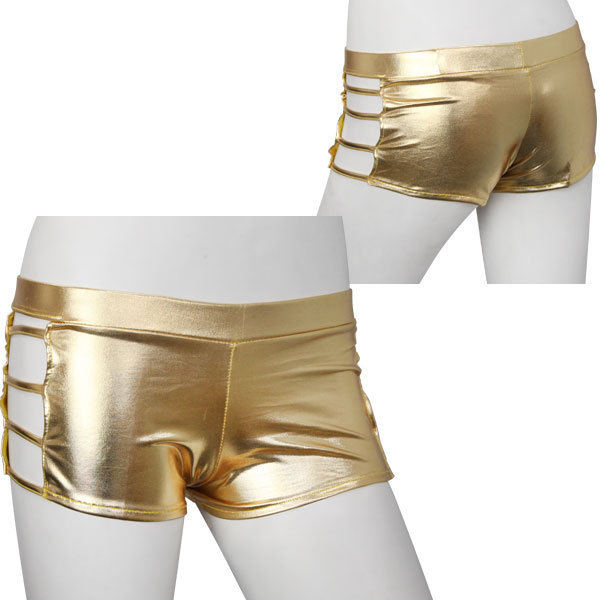 サイド魅せでセクシーに♪ド派手なメタリックゴールドのホットパンツ。●眩しいメタリックゴールドカラー●サイドはラダーデザインで肌魅せ●伸縮素材でお尻にフィット。ヒップラインを輝かせる超ド派手なカラーはダンス衣装にもピッタリ!素肌を覗かせるサイドデザインでセクシーさも◎なコスチュームです。