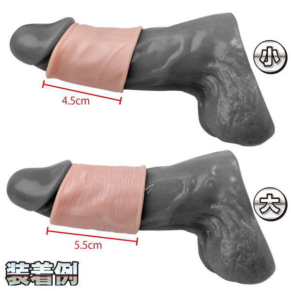 ●大小サイズ2個入り●小リング4.5×2.5φcm・大リング5.5×3.0φcm●ペニスの竿部分をリアルに再現●包皮をまとめて包み込み亀頭の露出をキープ●中折れ&早漏防止効果あり●大小同時装着でさらに締め付ければ持続力UPにも期待大。