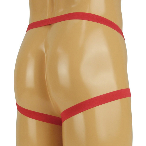 パワーリングでがっつりサポート!ジョックストラップ風デザインのメンズショーツ。●レッドカラーのダブルバンドデザイン●シンボルを締め付けるリング付き●しっかり丁寧仕上げの日本製。腰&太ももにバンドを纏った、ジョックストラップ風のメンズランジェリー!股間を根元から支えるシリコンリングの締め付けで、逞しさをプラスしながらしっかりサポートもしてくれます。