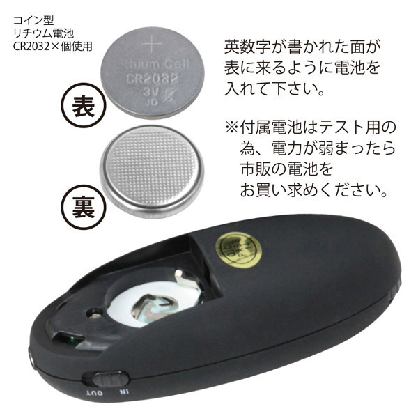 | ■ サイズ・ セット内容 | パッケージ:16.5×16.5×5.5cm 本体:プラグ7.5×2.6×2.2cm リモコン全長8.2cm 電池:ボタン電池(CR2032)×1個使用 | ||