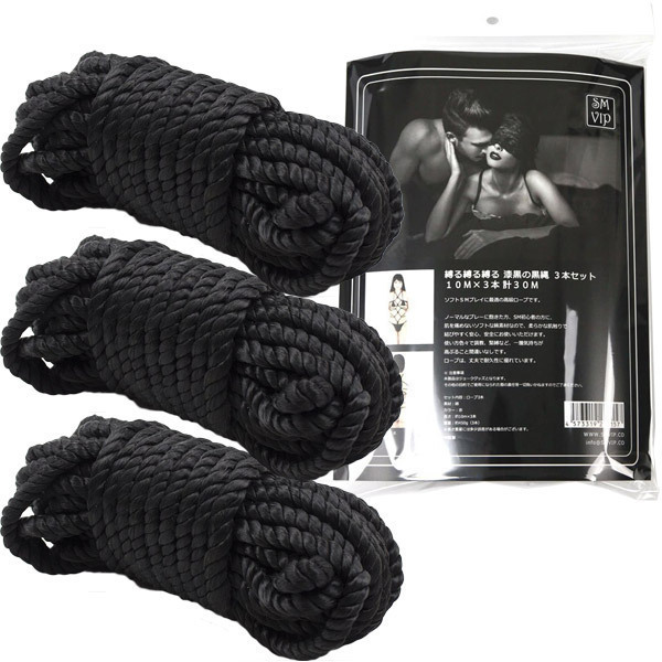 様々な緊縛バリエーションが楽しめるSMロープ3本セット!お肌を傷つけにくい肌当たりの優しい綿素材なので、初めての調教プレイや緊縛プレイにも最適です。
