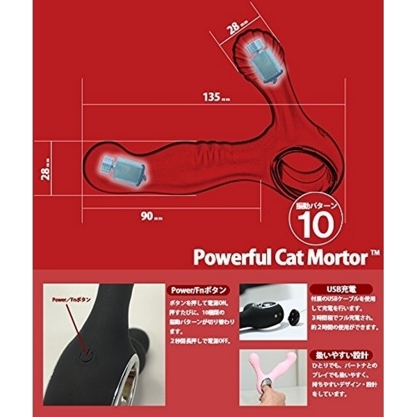 ハイクオリティー&ロープライスをモットーに掲げた人気ブランド「Cat Punch」シリーズ!ローター部分の角度を自在に変えられるフリーベンディング機能を搭載した充電式のEエネマバイブです。