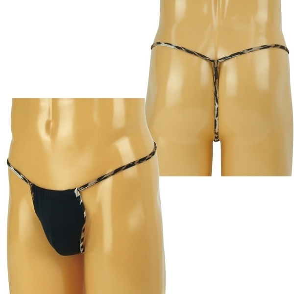 ストリングのレオパードデザインが絶妙なメンズTバックショーツ。●ブラックカラー×レオパード柄●すっぽり覆うゆったりフロント●極細ストリングで魅せる両サイド●紐のみのGストTバックデザイン。細紐デザインで太もも周りもスッキリ!ワイルドなレオパード柄をアクセントに、シャープで男らしいボディラインを印象づけるメンズランジェリー。フィット感の良い伸縮素材で着心地も抜群です。