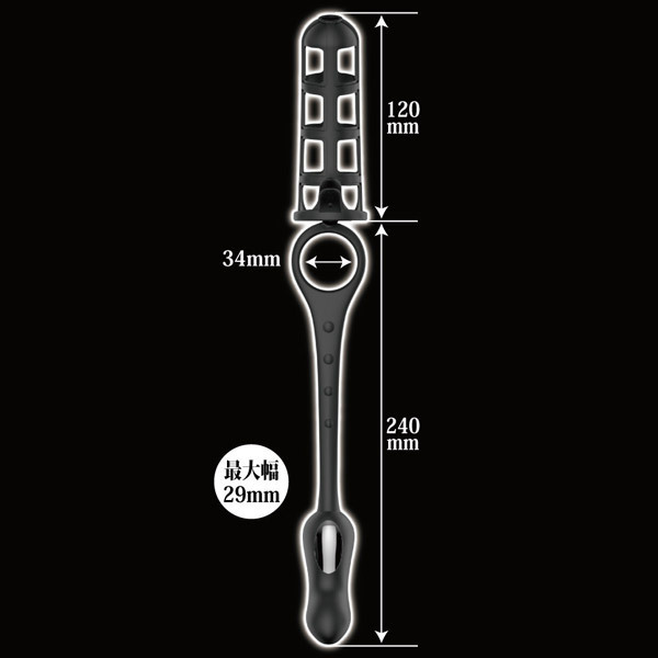 | ■ サイズ・ セット内容 | パッケージ:26.0×15.0×5.0cm 本体:サック全長12.0cm リング内径3.4cm アナルプラグ全長24.0cm USB充電式 | ||