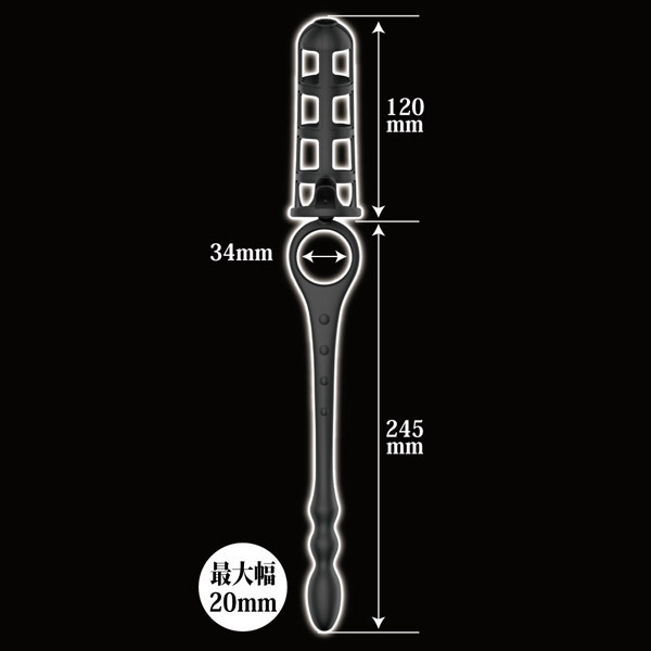 | ■ サイズ・ セット内容 | パッケージ:26.0×15.0×5.0cm 本体:サック全長12.0cm リング内径3.4cm アナルプラグ全長24.5cm | ||