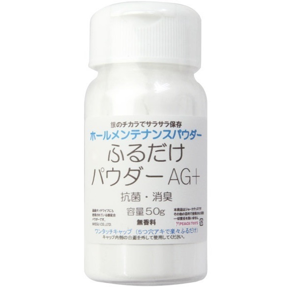 銀のチカラでサラサラ保存♪無香料のオナホール専用メンテナンスパウダー「ふるだけパウダーAG+ 50g」。