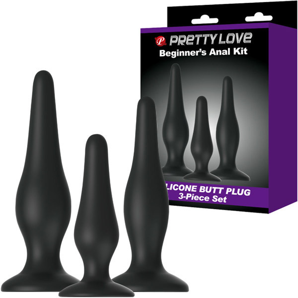 3つのサイズでステップアップ♪初心者さんにオススメな拡張アナルプラグ3本セット「プリティラブ ビギナーズアナルキット」。