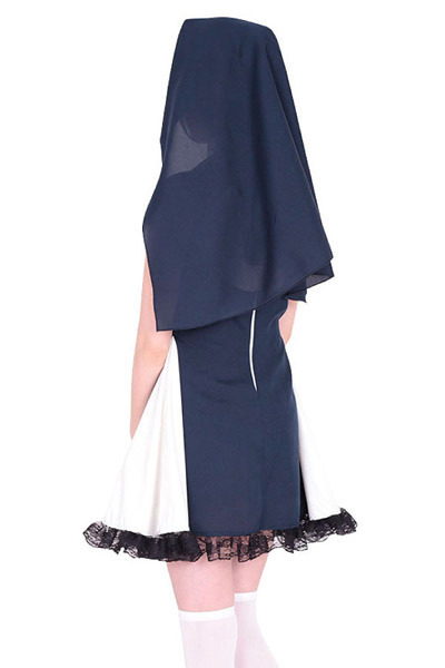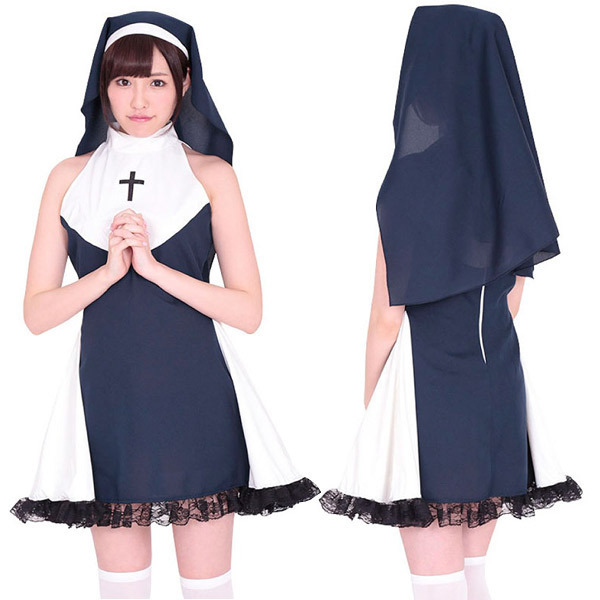 セクシーな修道女に変身♪ネイビー×白のバイカラーがオシャレなシスターコスチューム。ハイネックのホルターワンピースの裾には黒のフリルレースをON!もちろん、修道女コスチュームに欠かせないベールもセット。セクシーになりきりコスプレを楽しめるちょっぴり大人のコスプレ衣装です。※セット内容以外は付属しておりません。