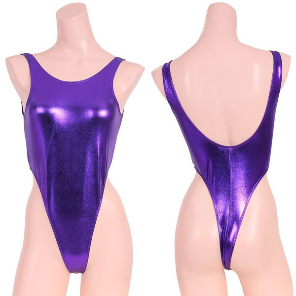 セクシー過ぎる究極のハイレグデザイン!艶やかなメタリック生地のレオタードコスチューム「ハイレグTバックレオタード メタリックパープル」。
