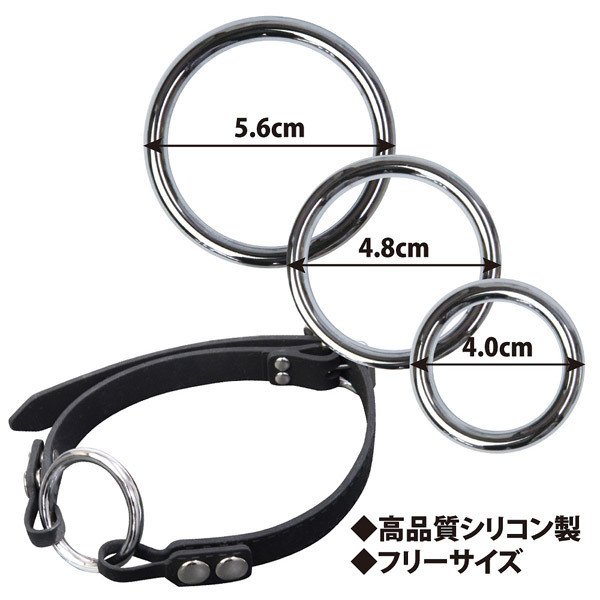 大、中、小とサイズの異なるメタルリングがセット!より幅広いプレイが楽しめるシリコン製のSM用口枷「シリコンマウスギャグ Oリング3サイズセット」。高品質シリコン素材を採用、凌辱感や羞恥心を煽るSMグッズ。シリコンベルトとメタルリングは着脱可能。異なる3サイズのメタルリングを装着できます。