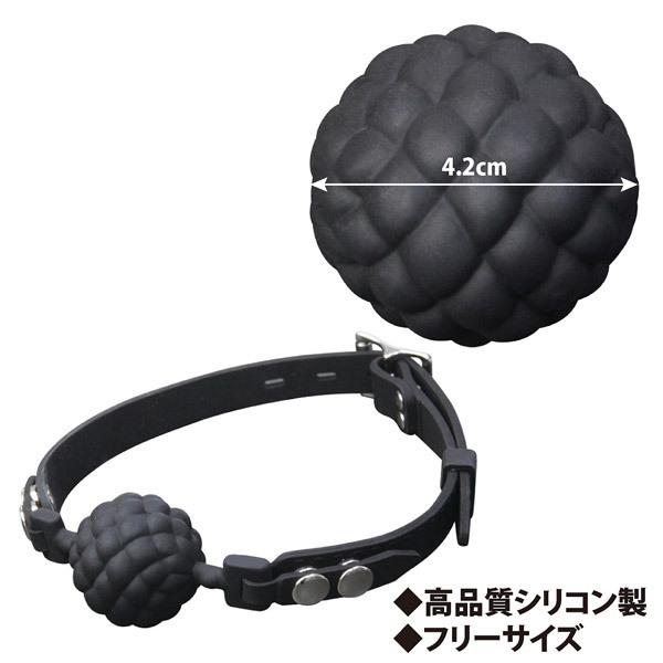 高品質シリコン素材を採用した凸凹ボールの「シリコンマウスギャグ ボール」。キルティング加工の溝をつたって流れ出る涎が、凌辱感や羞恥心を煽るSM拘束グッズ!サイズ調節可能なベルトと約4.2cmのボールはそれぞれ取り外せます。