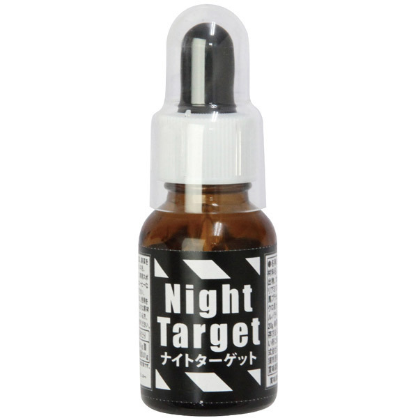 女の性を解放する「ナイトターゲット」!カカオ・ガラナ・プエラリアミリフィカ・マカ等の有効成分を配合。内容量は20ml。お飲み物に数滴垂らしてください。