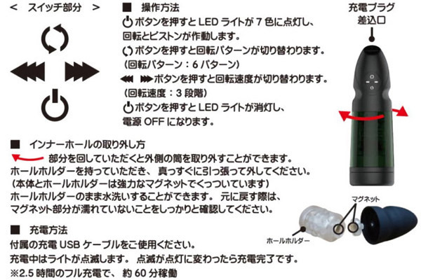 片手で持ちやすい簡単操作の電動ホール「オーロラカップ」が登場しました!こちらの商品は「6種類の回転パターン」と「3段階の回転スピード」の切替ができるのが特徴で、内部のホールが上下にピストンすることでパワフルな高刺激を与えてくれるほか、使用中はムードに合わせてLEDがカラフルに点滅することで、他にはない新鮮さを味わわせてくれます。