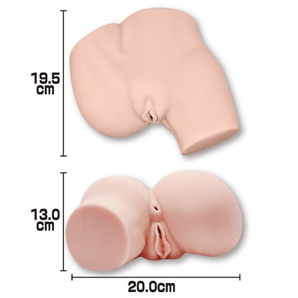 19.5×20.0×13.0cmのホールは、前後違った刺激を楽しめる贅沢な2穴構造♪片足を上げている姿勢もまた滾るものがありますが、しっかりと作りこまれたヴァギナはヒダ感たっぷりで、それもまた気持ちが高まりますよね。
