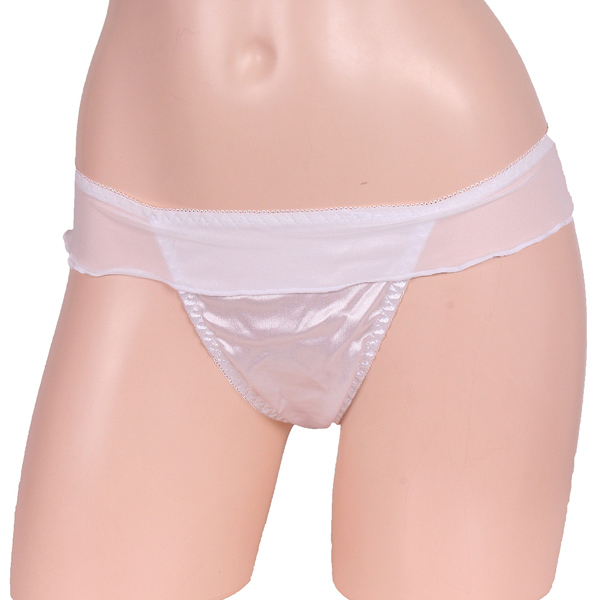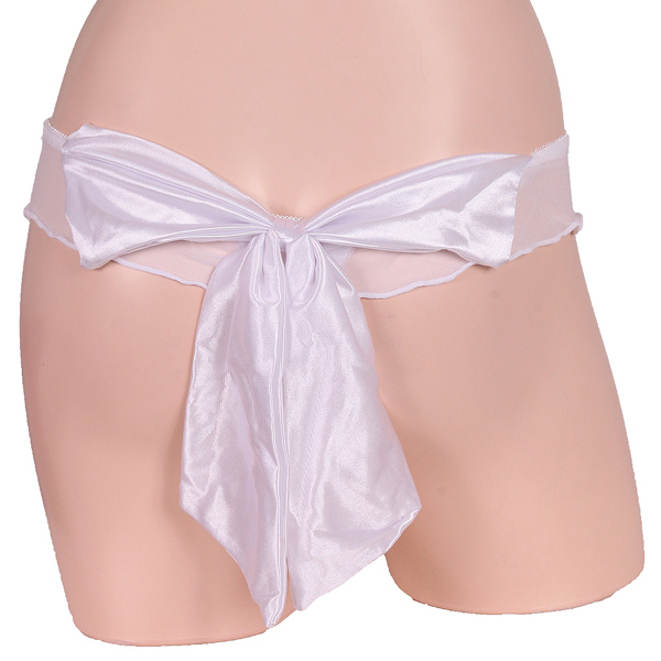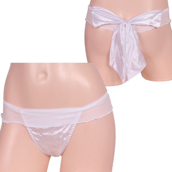 フロントには透け感のあるネット素材のフリル。バックにはニットサテンの大き目なリボンをあしらった贅沢な白のTバック。ドラマティックな夜におすすめ。※こちらの商品は受注発注商品の為、ご注文から発送までに3、4営業日掛かる場合が御座います。