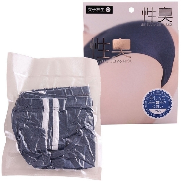 ●リアルな白ライン入り紺色ブルマ●おしっこのにおい付き●プロ調香師が香りを忠実に再現●匂い漏れなしの密封パック入り。