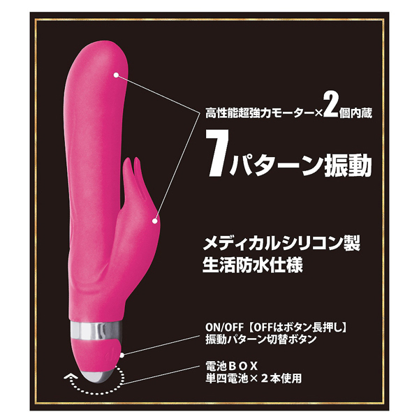 サオと子機がダブルで振動することにより、GスポットとCスポットを同時に責め立てダブルの振動でバツグンの使い心地を実現♪7パターンの振動と生活防水機能、そして静音設計を搭載し、本体素材にはメディカルグレードのシリコンを採用しているから程よい感じの挿入感も得られます!見た目からは全く想像も出来ないほどのやみつきバイブ。