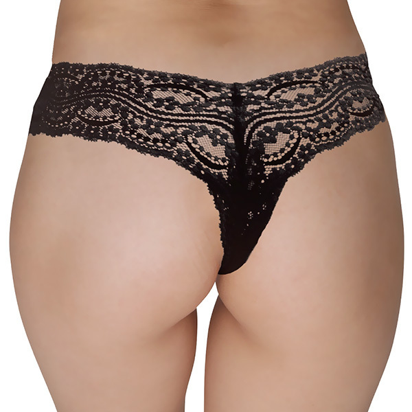 ギャップ萌えを狙うなら大人の黒!透け感たっぷりな総レースの日本製Tバックショーツ。