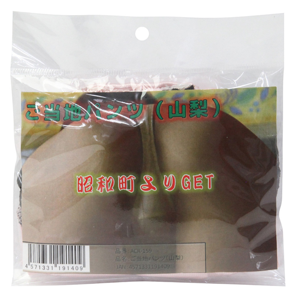 デザインやクロッチ部分のシミなど届くまでのお楽しみ♪使用済み下着が一枚入ったご当地パンツシリーズより、山梨県の昭和町でGETしたという女性もののパンティー。