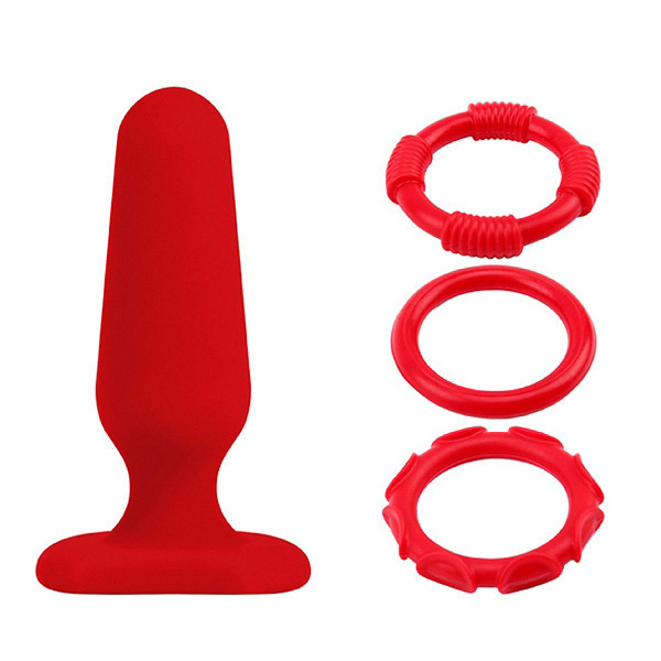 | ■ サイズ・ セット内容 | パッケージ:19.0×10.0×5.0cm 本体:コックリング直径4.2cm(内径3.0cm)・アナルプラグ7.5×2.5cm セット内容:アナルプラグ、リング×3個 | ||