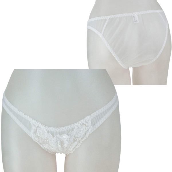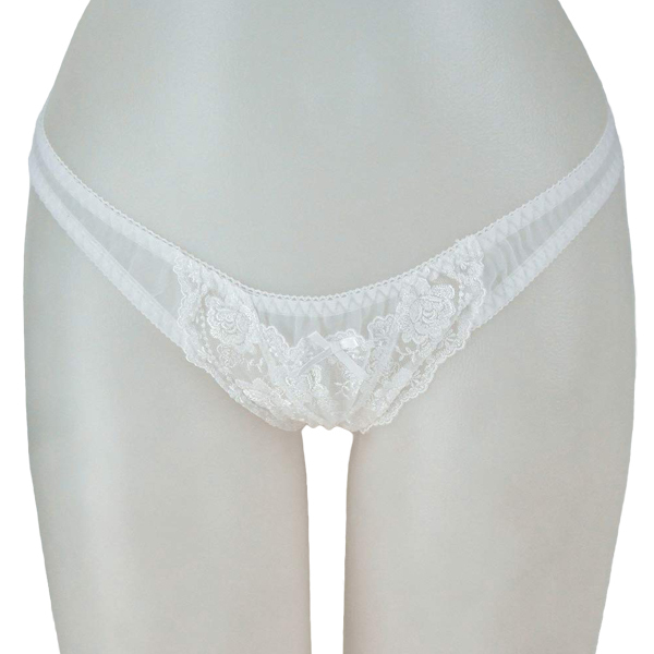 花柄刺繍レースがエレガントな極薄生地の日本製フルバック(白)大きめ2Lサイズ。股上浅めのローライズ仕様!