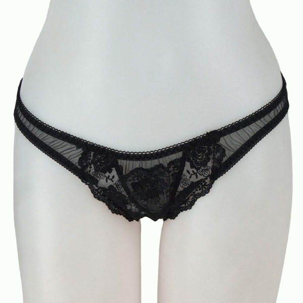 大人の色気を引き立たせる花柄刺繍レースの日本製フルバック(黒)大きめ2Lサイズ。極薄生地から透けて見える素肌がセクシー♪露出多めのローライズ仕様でエロティックにアピール!
