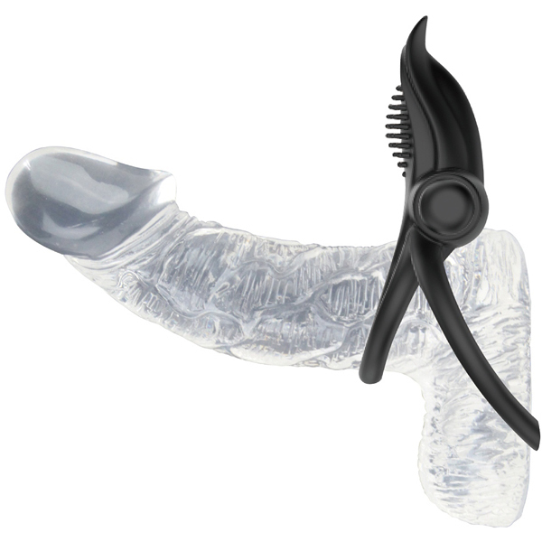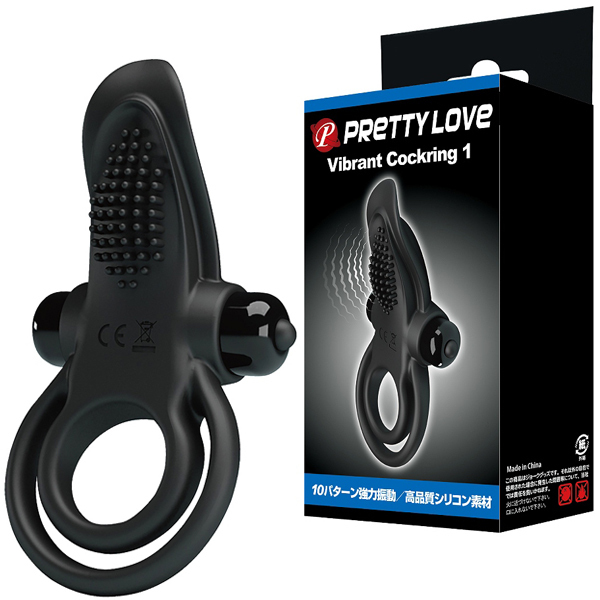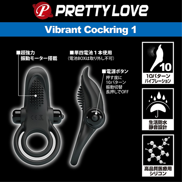 根元からギュッと締め付け男性をサポートしつつ、10パターンの強力振動でパートナーを刺激するシリコン製の電池式ペニスリング(単4電池×1本使用)。