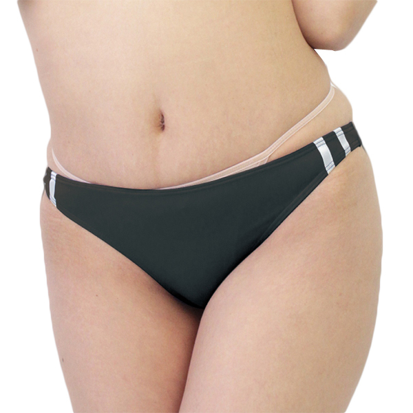 伸縮性のあるストレッチ生地が優しくお尻を包み込む日本製のブルマ風ハーフバック(黒)。ブルマを普段着でも取り入れたいほどブルマを愛する人のための懐かしデザイン!サイドに2本の白ラインをほどこした本格派仕様です♪