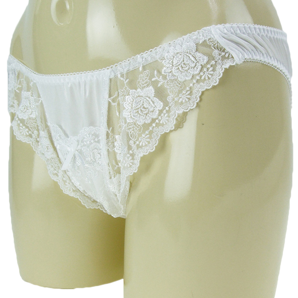 伸縮性の高いストレッチ素材が穿き心地抜群!光沢の美しいフェリカ生地と繊細な花柄レースで仕立てた日本製フルバック。清楚なカラーと華やかなデザインが好印象!フロント部分にはレースポケット付きで、お手持ちのローターを収納していただけます。