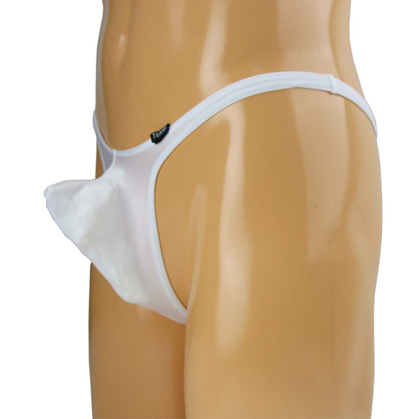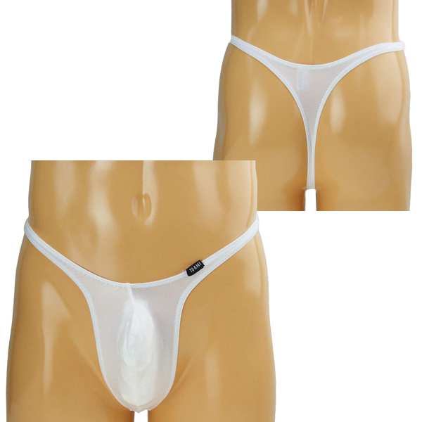 男性のシンボルを主張する上向き縫製の日本製メンズ用Tバック(白)。伸縮性の高い2wayストレッチ生地が身体にフィット!サオや玉袋もすっぽり納めてくれるため穿き心地抜群♪もっこりとしたフロントとお尻を強調するTバックで男の魅力を引き立てます。
