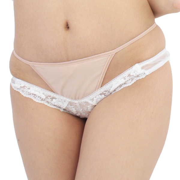 可憐さとエロスが融合した大胆スケスケな極小ローライズ仕様のレディース用ハーフバック(白)。フロント部分にレース刺繍を施し清純さをアピールしつつ、限界まで露出させた過激なデザインでギャップを狙います♪