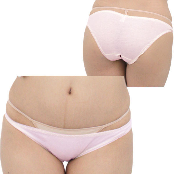 肌触りの良い綿素材を使用した穿き心地の良い日本製フルバック(ピンク)。インゴム仕様で肌がかぶれにくく、ボディに心地よくジャストフィットする伸縮性抜群のオープンフルバック!
