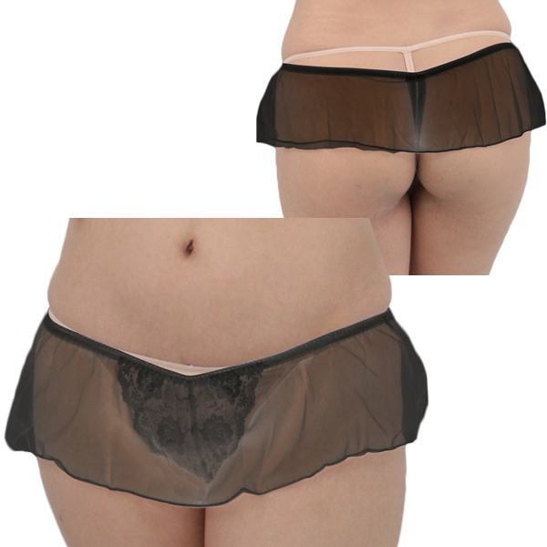 動くたびにヒラリと揺れる♪透け感のある極薄スカートと、レース刺繍が施されたショーツが一体型になった日本製セクシーTバック(黒)。スケスケのレースから見える姿にエロスを感じさせる大人なデザイン!特別な夜に着用したい一枚です。