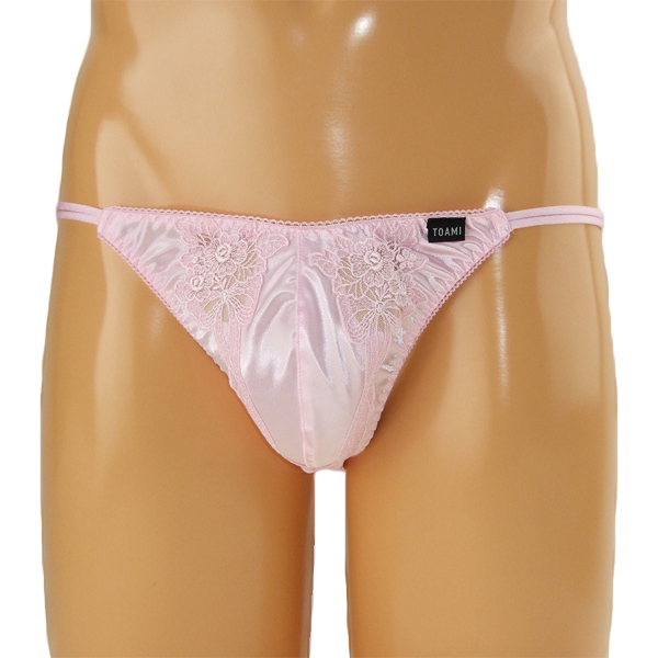 可愛いもの好きな男性に!光沢生地と花柄刺繍が美しい日本製フルバック(ピンク)。艶やかな伸縮性のあるストレッチ生地と透け感のある花柄レースが下半身をエレガントに飾る♪レースの隙間からうっすらと見える素肌にも注目の一枚。女装下着としても是非どうぞ!