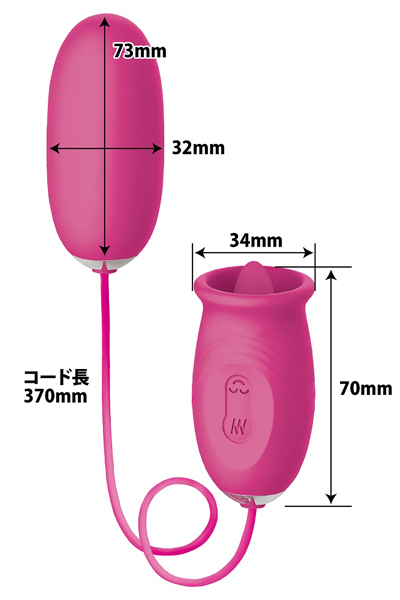 | ■ サイズ・ セット内容 | パッケージ:20.4×9.7×5.7cm 舌ローター(7.0×3.4cm)・振動ローター(7.3×3.2cm)・コード長37.0cm USB充電式 | ||