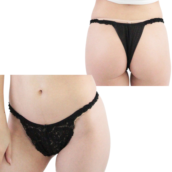 フロント部分をレースで華やかに飾った日本製のセクシーTバック(黒)。穿き心地良く伸縮性のある2wayストレッチ素材を使用♪美しいレース使いで上品な色気を引き出すレディース用Tバック。