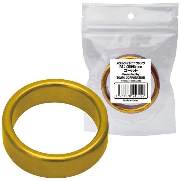 普段は見えない所も格好良くキメる!メタリックの光沢感が美しい内径4.5cmのコックリング(ゴールド)。アルミニウム合金で仕上げた重厚感のあるデザインがスタイリッシュ!大人の男をより魅力的にみせるお洒落なコックリングです。吊り付きクリアパッケージ入り